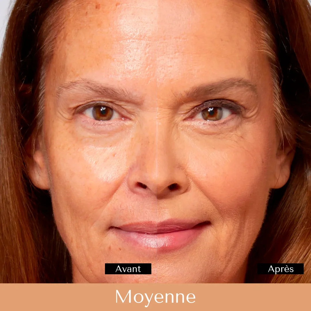 Ce mécanisme crée un effet soft-focus qui atténue visuellement les imperfections, lisse la peau et lui redonne un éclat immédiat.